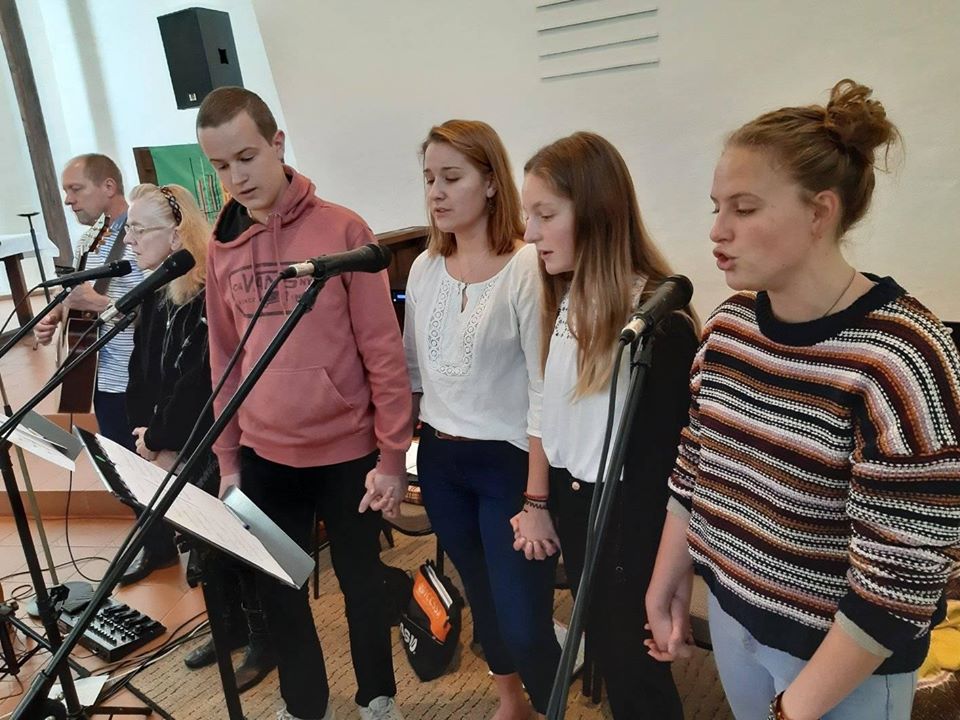 Die Proben des Posaunenchors finden jeden Donnerstag um 19.30 Uhr an der Kirche statt. Der Posaunenchor ist eine der aktivsten Gruppen in der Kirchengemeinde. Wir treffen etwa vierzig Mal im Jahr zur Probe, spielen in zehn Gottesdiensten pro Jahr, spielen auf drei Basaren, spielen am St. Martinstag in der katholischen St. Bonifatiuskirche, und manchmal unterstützen wir auch andere Gemeinden unserer Kirche. Durch die Musik tragen wir Gottes Wort in die Welt.
