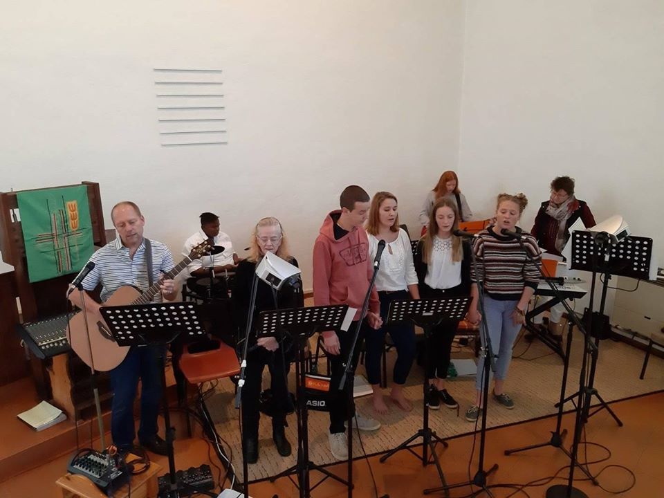 Ob unsere Lieder sonntags von der schönen, 130 Jahre alten Orgel, dem umfangreichen und lebendigen Bläserchor oder dem elektronisch unterstützten Worship Team begleitet werden, es sind doch immer freudige Gottesdienste, in denen wir zusammen Christi Gnade an uns feiern. Wie gesegnet ist doch unsere Gemeinde mit ihrer Vielfalt an musikalischen Talenten und Präferenzen. Das Worship Team erhielt seinen Namen 7-Days bei seiner Gründung Ende 2010. Es waren damals 7 Teilnehmer. Der Name erinnert uns daran, dass Gott den Himmel und die Erde an 7 Tagen schuf. Deshalb wollen wir ihn nicht nur einmal im Monat im Band-Gottesdienst, auch nicht nur jeden Sonntag, sondern 7 Tage die Woche loben! Ja, jeder Atemzug soll ein Lobgesang an ihn sein!